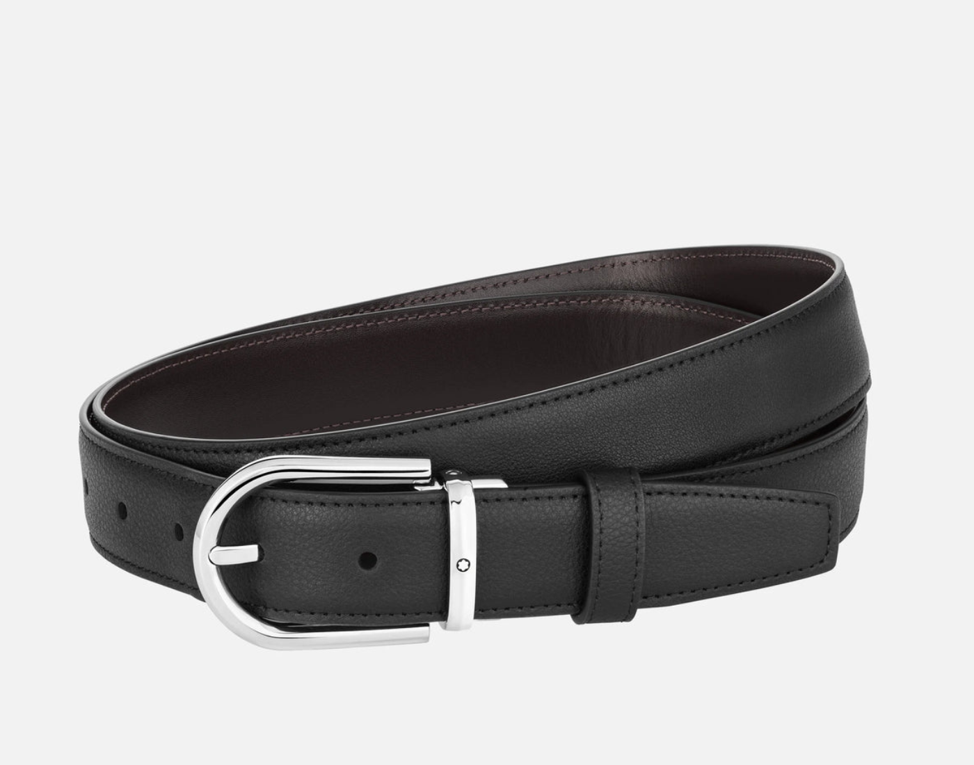 Cintura reversibile pelle nera/marrone 30 mm fibbia ferro di cavallo Montblanc