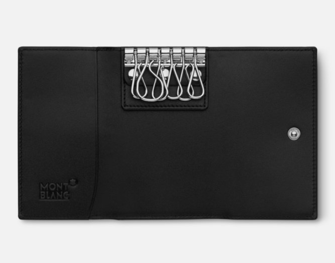 Descrizione : Astuccio portachiavi in pelle di vitello pieno fiore europea, nero lucido esclusivo Montblanc, fodera jacquard con marchio Montblanc, finiture metalliche, emblema Montblanc con anello finitura palladio, con anelli per 5 chiavi e 1 chiave della macchina