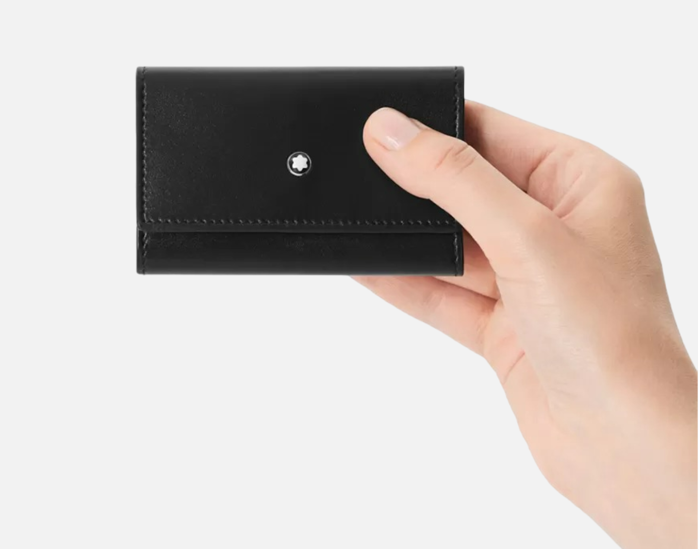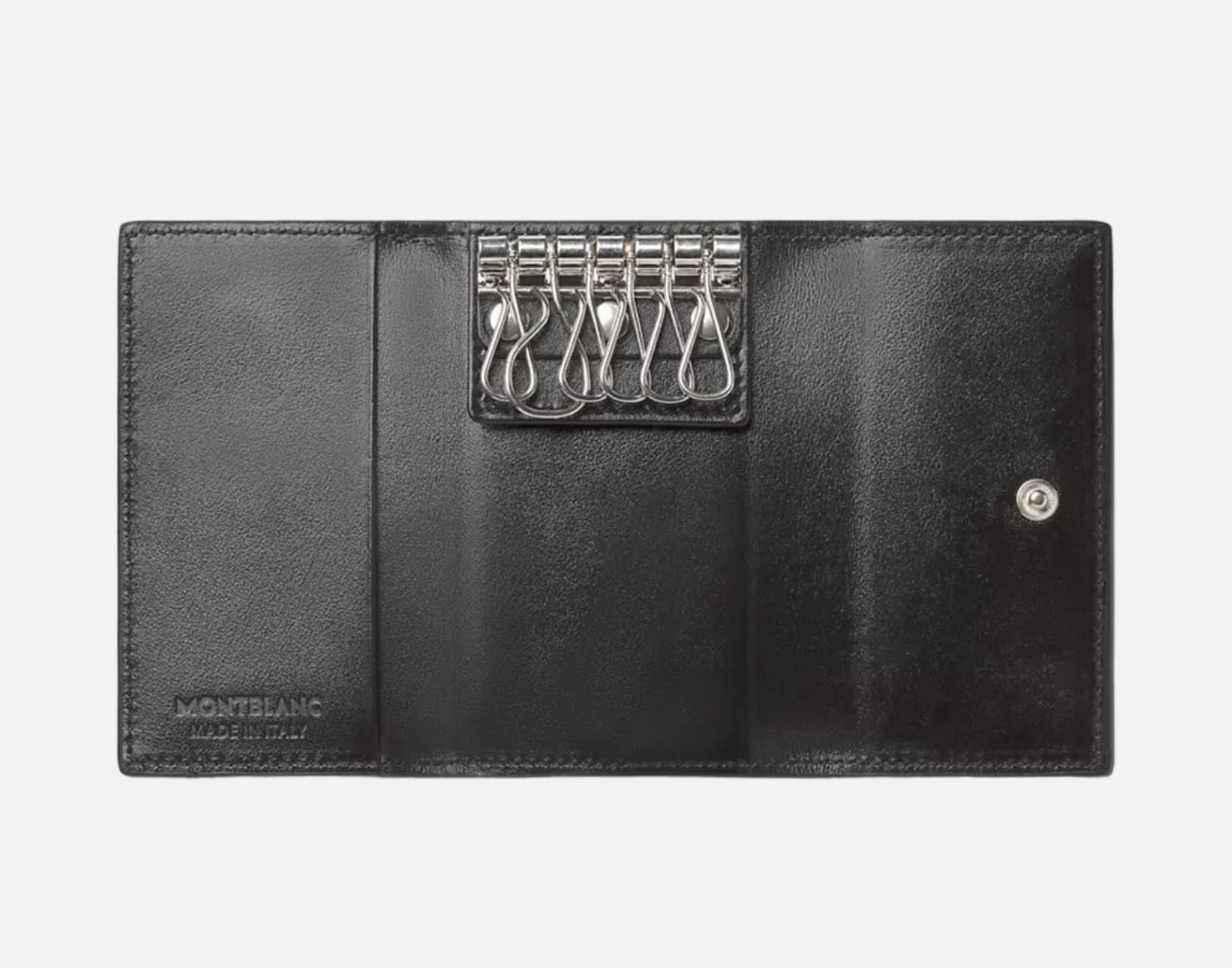 Descrizione : Astuccio portachiavi in pelle di vitello pieno fiore europea, nero lucido esclusivo Montblanc, fodera jacquard con marchio Montblanc, finiture metalliche, emblema Montblanc con anello finitura palladio, con anelli per 5 chiavi e 1 chiave della macchina.