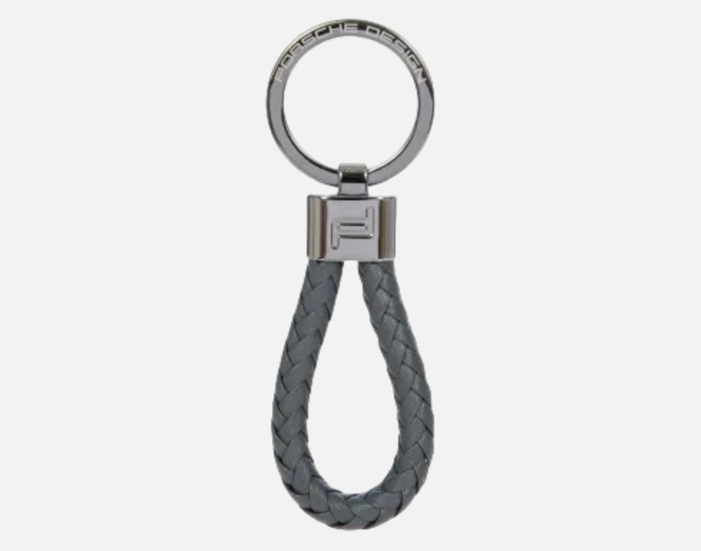 Elegante portachiavi firmato da uomo con cinturino in pregiata pelle intrecciata e anello. Portachiavi con logo Porsche Design inciso a laser