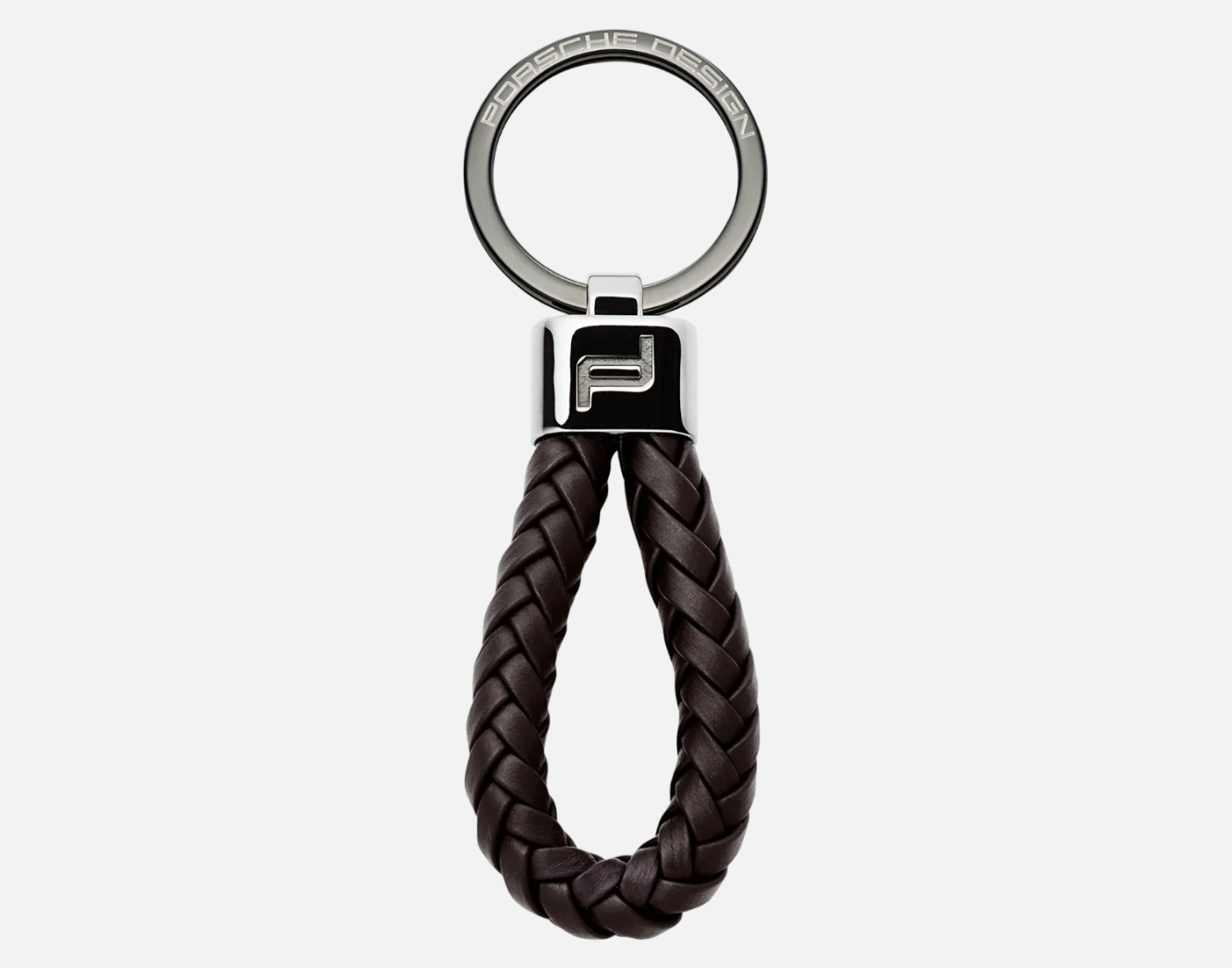 Descrizione : Elegante portachiavi firmato da uomo con cinturino in pregiata pelle intrecciata e anello. Portachiavi con logo Porsche Design inciso a laser