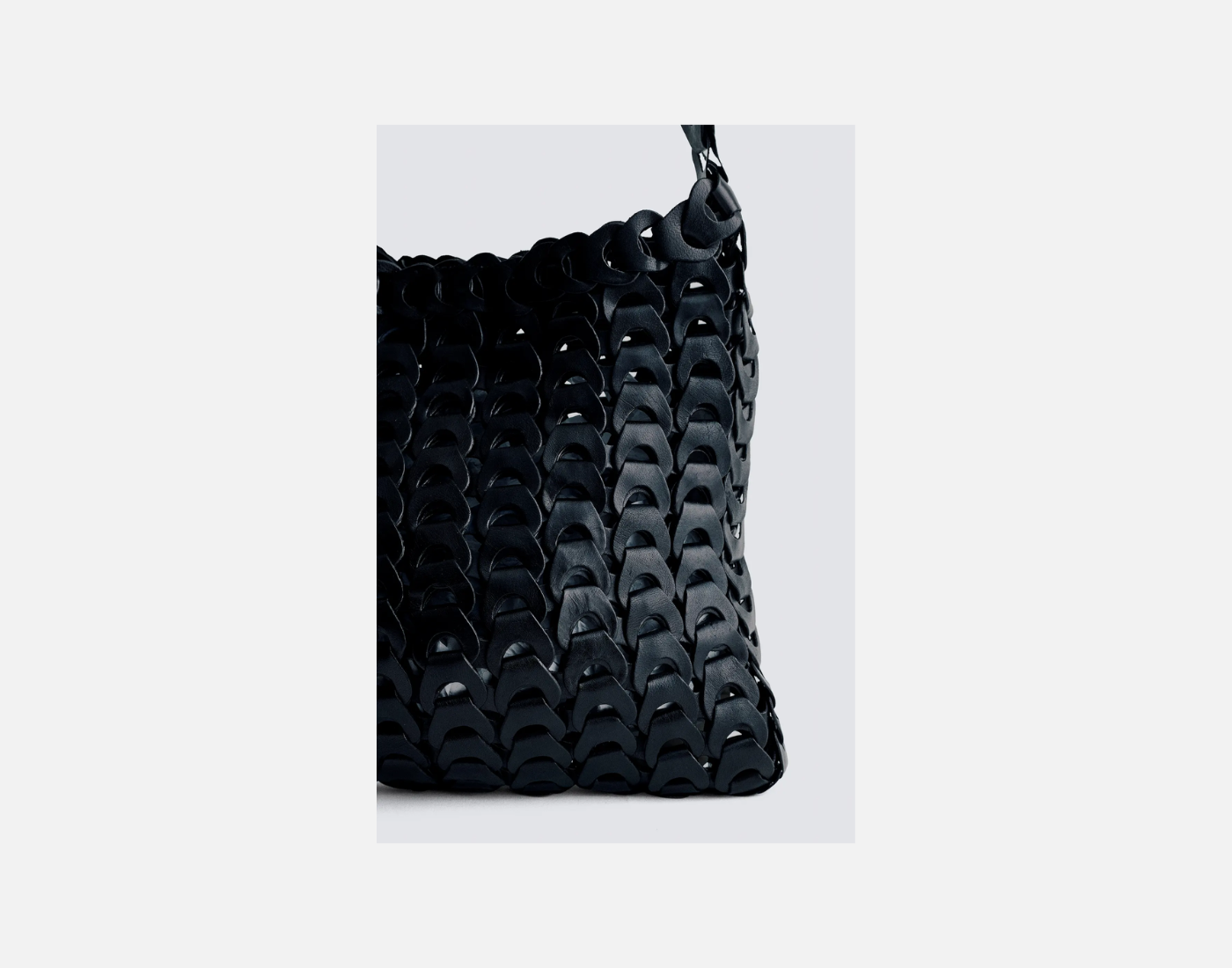 Descrizione : La "NS Link Tote" mette in mostra design innovativo e sostenibilità, realizzata con pelle di bufalo riciclata in eccedenza, morbida ed ecologica. Questa borsa è caratterizzata da cinturini unici che formano medaglioni in pelle, collegati insieme come una catena, creando un look distintivo e strutturato. Versatile nel suo stile, può essere indossata a spalla o crossbody, adattandosi con disinvoltura alle tue esigenze.